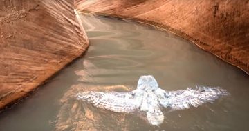 Turistas capturam um momento raro: uma coruja nadando