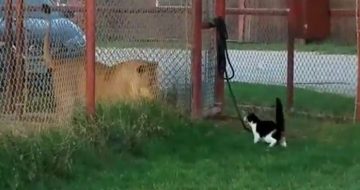 Esta gatinha desafiou um leão enorme e provou que tamanho não é documento